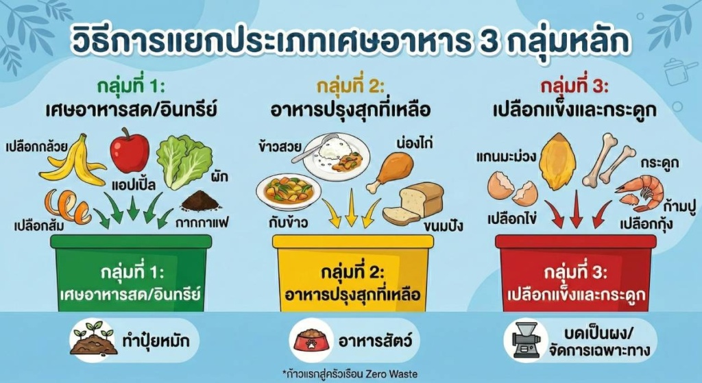 ก่อนจะจัดการได้ถูกวิธี คุณต้องรู้ก่อนว่า เศษอาหารแบ่งออกเป็น 3 ประเภทหลัก:
